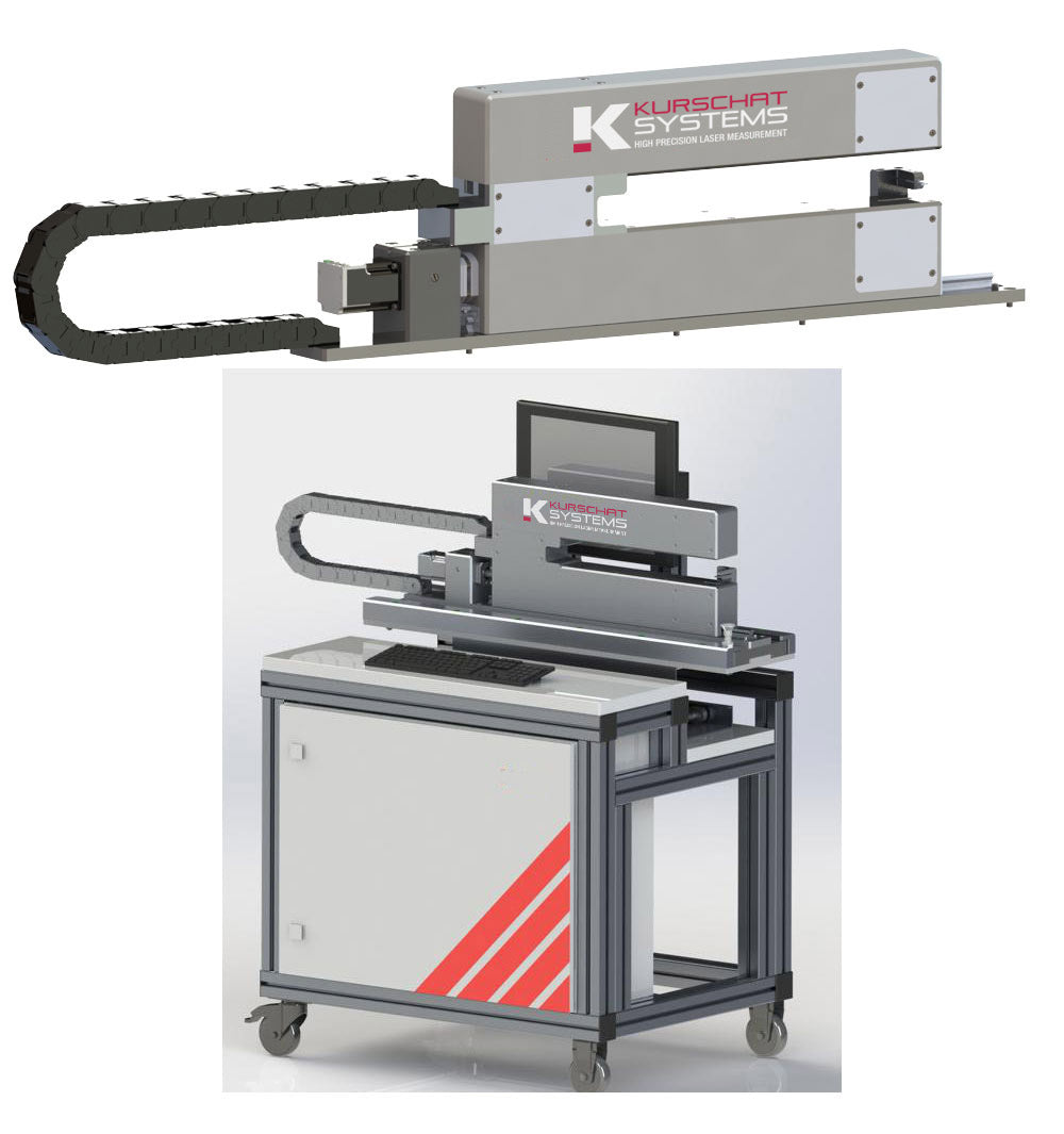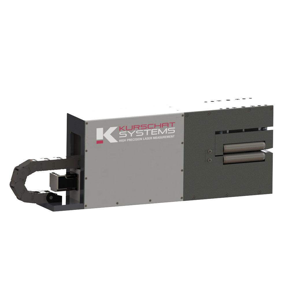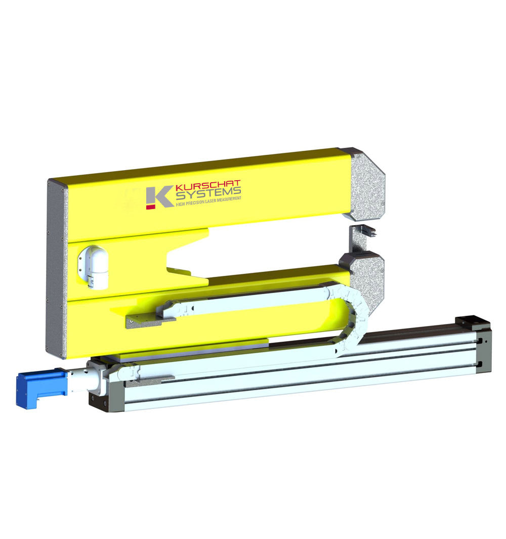 ✓ Traversierender, kompakter Lasermessbügel für hochpräzise Dicken-/Profilmessung in Stanzlinien, Walzprofilieranlagen, Walzwerken und Kalandrieranlagen